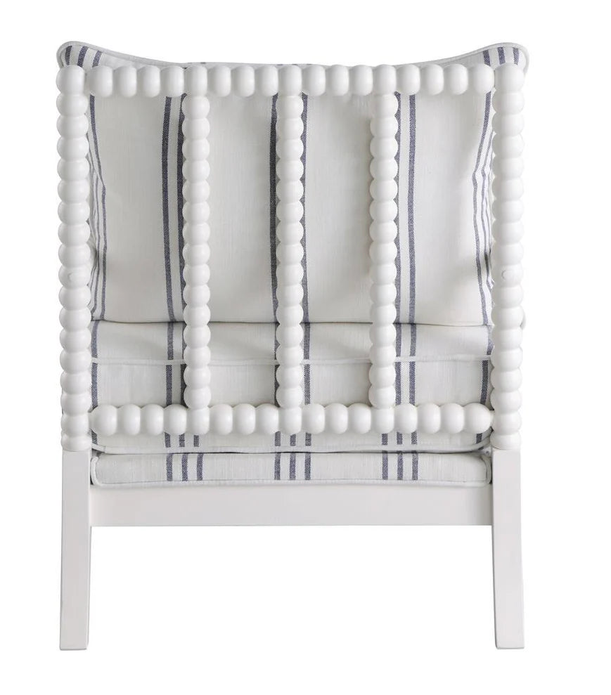 Bright and inviting, the Bayshore Spindle Chair blends contemporary charm with subtle boho vibes. Crafted from mango wood with a crisp white finish, its sharp spindle posts and decorative armrests exude nautical flair.