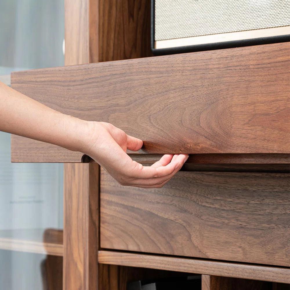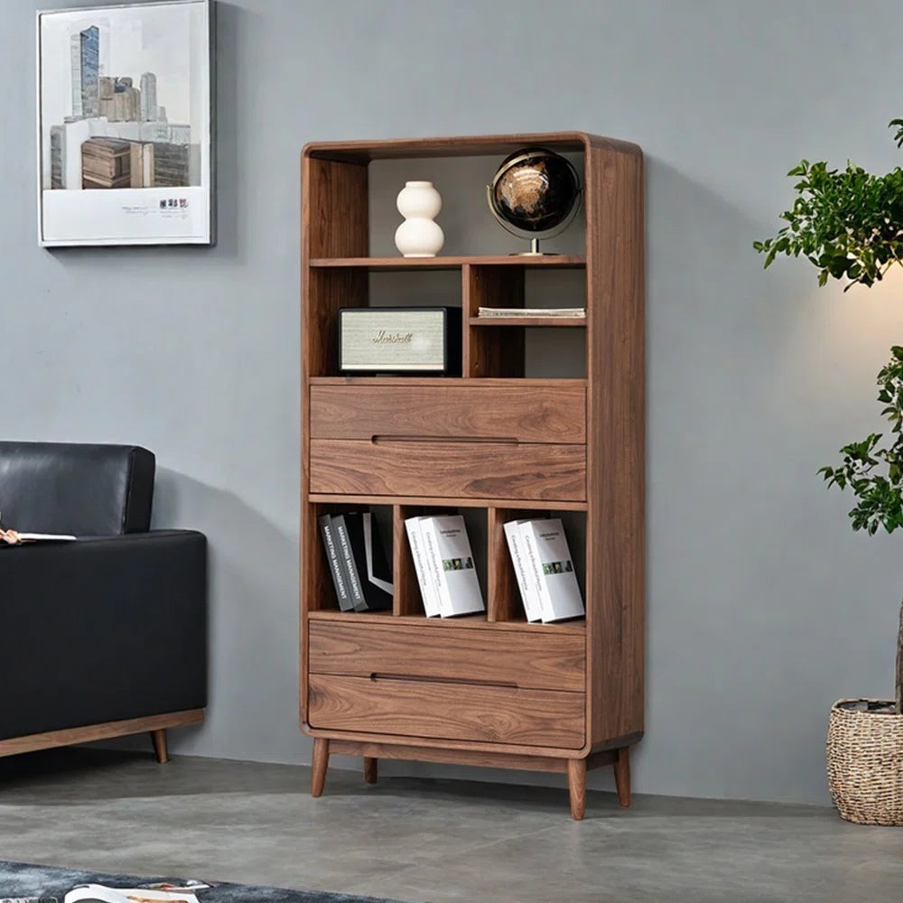 Column Library features a vertically driven design that maximizes storage without occupying excessive floor space. The symmetrical framework creates visual order and balance. Solid Acacia wood construction reinforces durability and longevity. It enhances both residential and professional interiors with composed sophistication.
