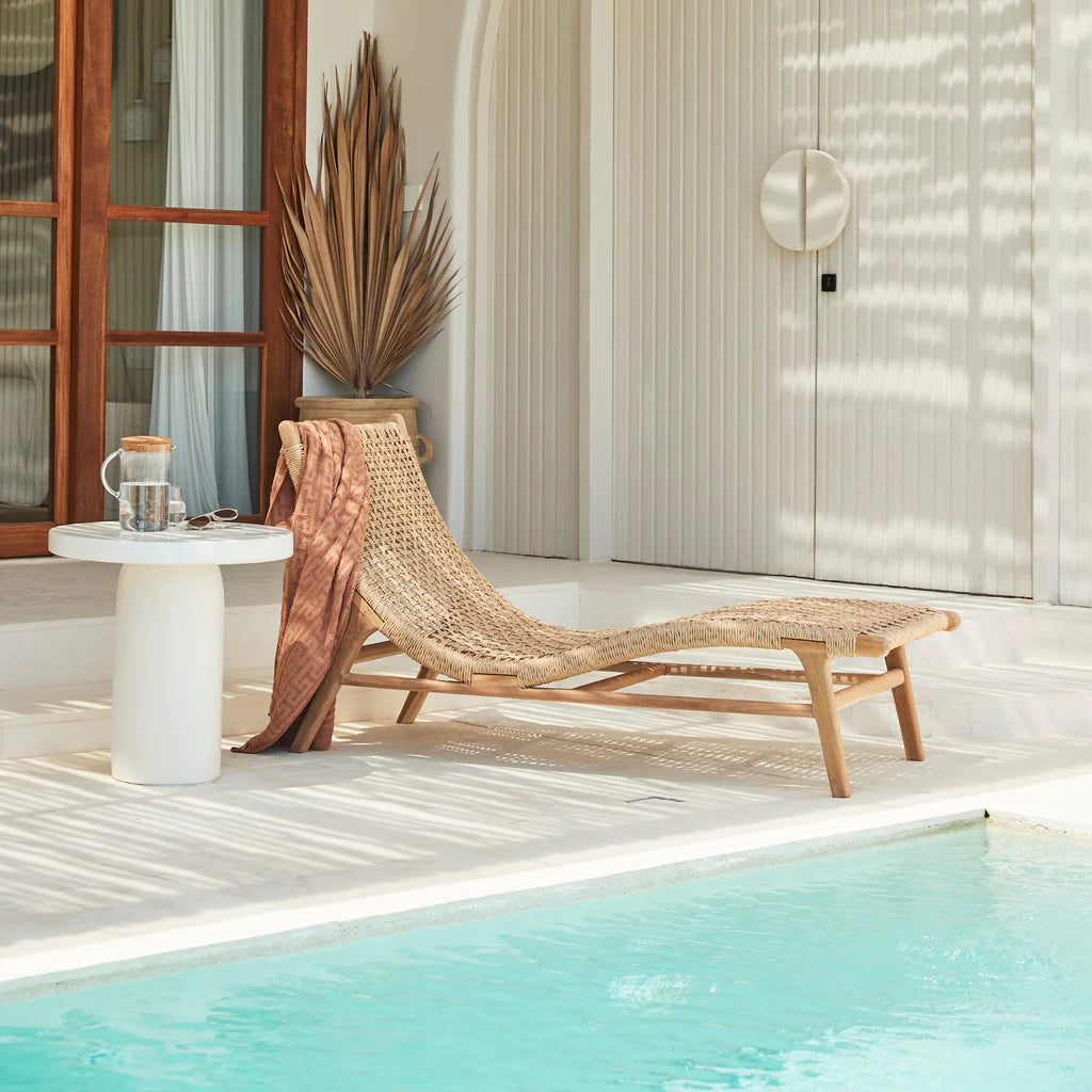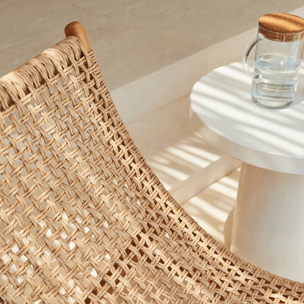 The Solaro Lounge Chair is a stunning testament to artisanal craftsmanship, combining sustainably sourced solid acacia wood with eco-friendly synthetic cord weaving. Designed for both indoor and outdoor use, this lounge exudes timeless elegance while ensuring durability. Over time, the wood’s natural reddish tones gracefully transition to a weathered grey, adding character to any space it graces. Perfect for soaking up the sun or relaxing indoors.